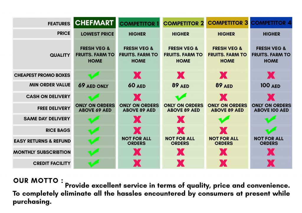 Chefmart does not compromise in quality services with customers expecting budget and take over their organic produce to customer home within a day in Dubai. Simply, you can stay at your home. A perfect organic produce knocking your door without loss of that freshness and nutrients.